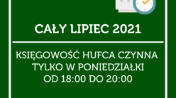 W najbliższy czwartek, 02.09.2021, księgowość hufca będzie nieczynna. Zapraszamy na najbliższy dyżur w poniedziałek – 06.09.2021.